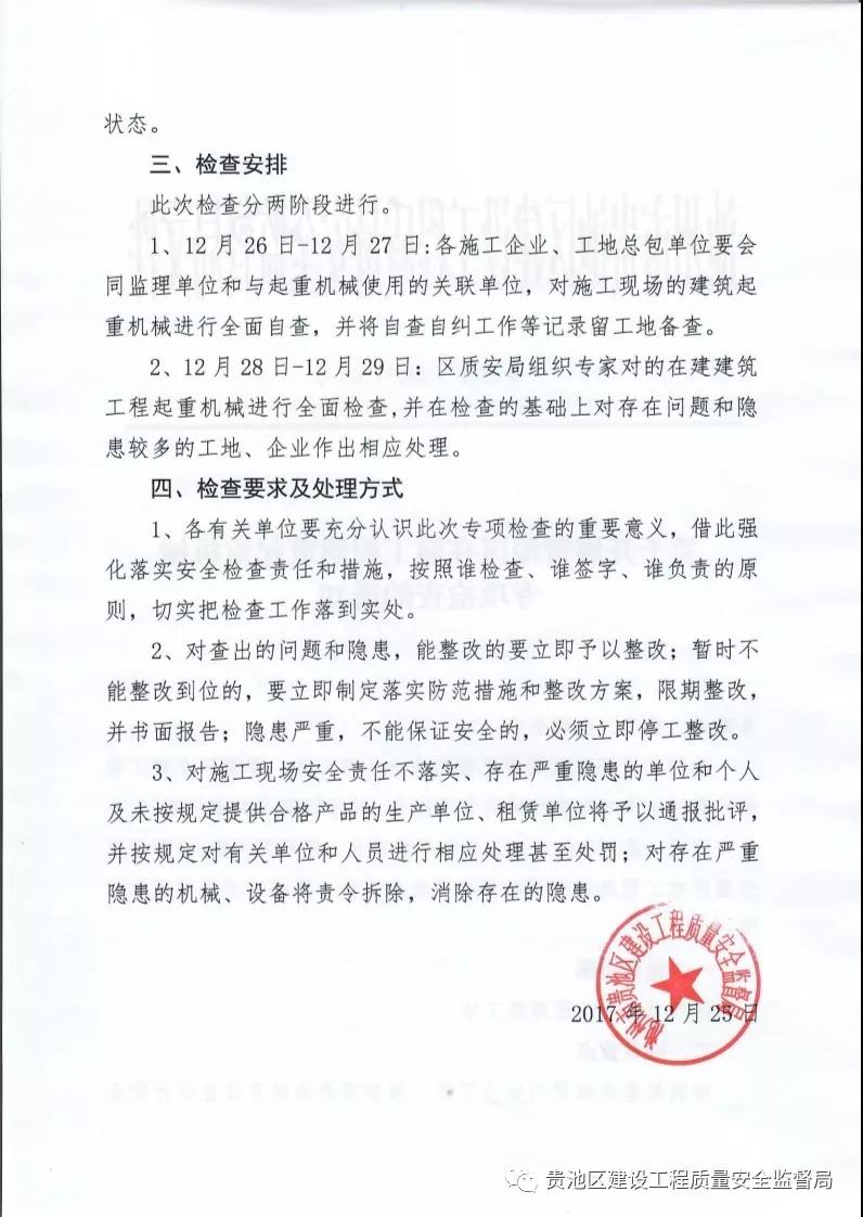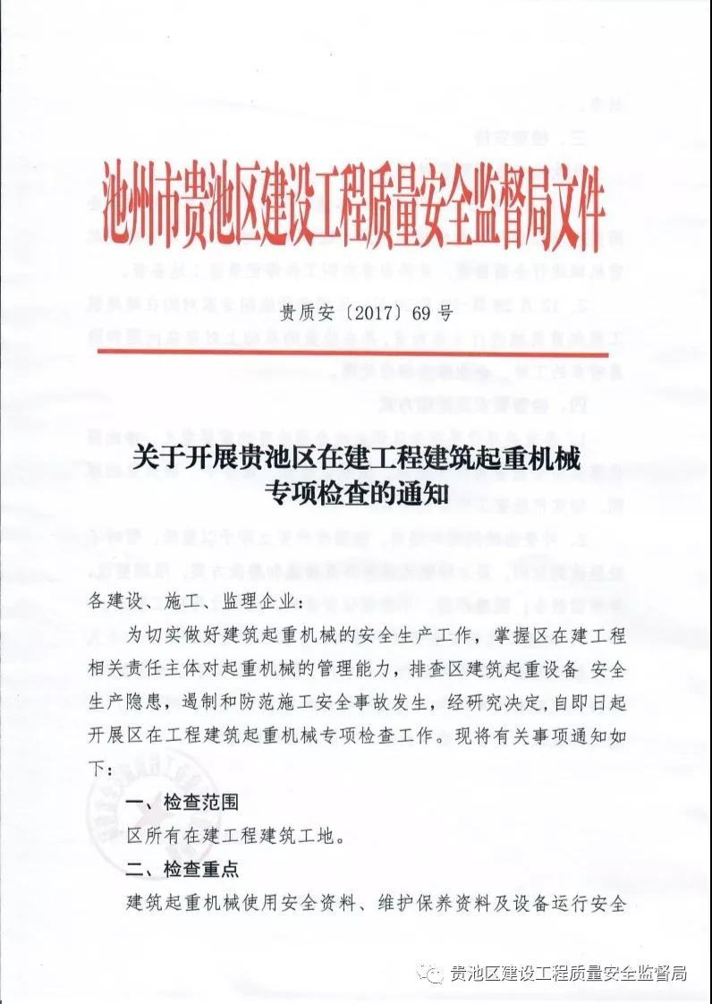 2017年住房保障建设质量信息----关于开展贵池区在建工程建筑起重机械专项检查的通知